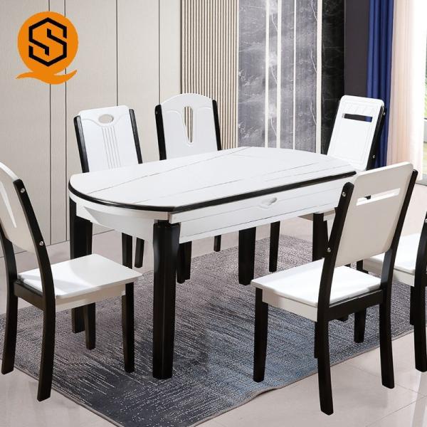 6 seats Round/Square Shape Home Furniture Rock Slab White Simple Dining Table